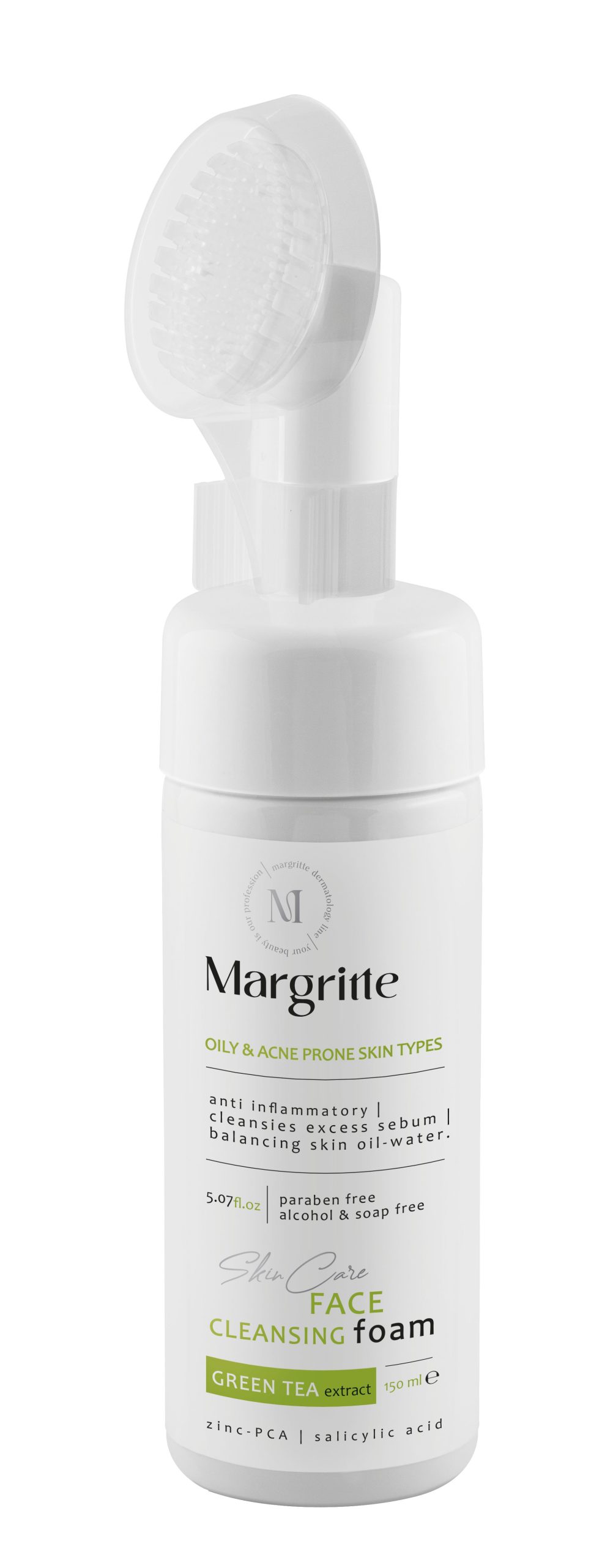 مقدار مناسبی از فوم شستشوی صورت (پوست چرب و مستعد آکنه) مارگریت را روی پوست مرطوب صورت پمپ کرده و با استفاده از برس سیلیکونی نرم محصول، به آرامی پوست را با حرکات دایرهای ماساژ دهید. این کار علاوه بر پاکسازی، به بهبود گردش خون و شفافیت پوست نیز کمک میکند. پس از ماساژ کامل، صورت خود را با آب ولرم به طور کامل آبکشی نمایید.