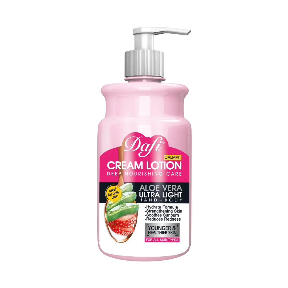 به دنبال پوستی نرم، شاداب و بینقص هستید؟ لوسیون بدن آلوئه ورا دافی با خاصیت آبرسانی و آرامشبخش پوست، گزینهای ایدهآل برای مراقبت روزانه شماست. این لوسیون با فرمولاسیونی غنی از عصاره آلوئه ورا و هیالورونیک اسید، رطوبت لازم پوست را عمیقاً تامین کرده و خشکی و حساسیت را کاهش میدهد. فناوری CalmVit آن به تسکین التهابات و قرمزی کمک میکند. بافت سبک و جذب سریع آن بدون حس چربی، پوستی لطیف، شفاف و درخشان برایتان به ارمغان میآورد. تجربه لذتبخش مراقبت از پوست را با دافی آغاز کنید. همین حالا سفارش دهید!